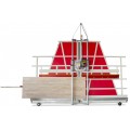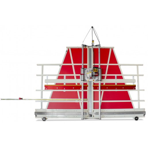 Scie à panneaux verticale, mobile avec châssis long en acier soudé.